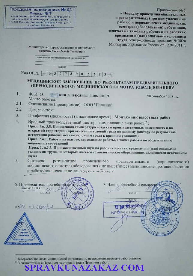 Купить справку для работы на высоте в Москве недорого