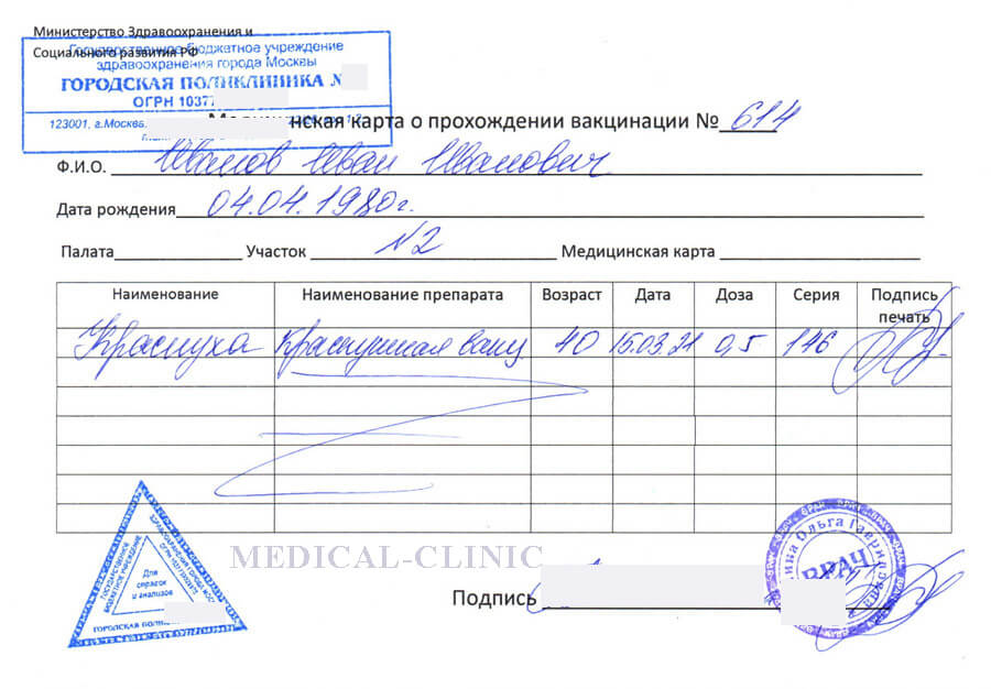 Поэтому мы готовы предложить вам самый короткий путь – купить справку о прививке от краснухи в Москве. Что будет содержать в себе медицинский документ: