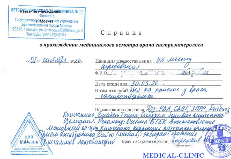 Купить справку от гастроэнтеролога в Москве с доставкой