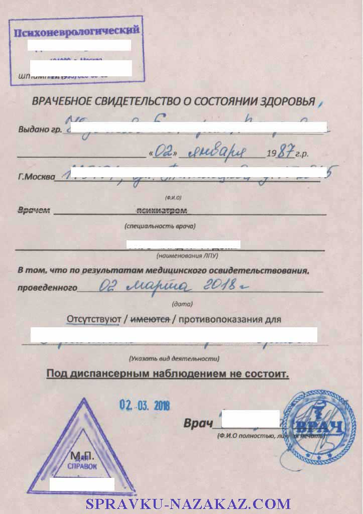 Из всех диспансеров Москвы: Оформление в течении несколько часов: По прописке: Оплата при получении: Бесплатная доставка по кольцевой линии метро: