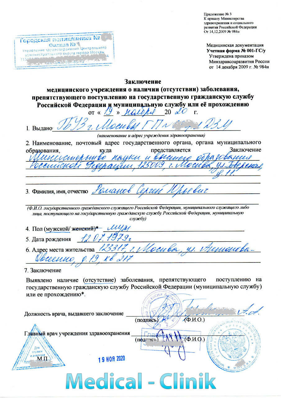 Как оформить справку для работы на госслужбе 001 гсу