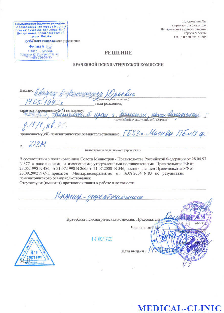 Решение врачебной психиатрической комиссии купить в Москве