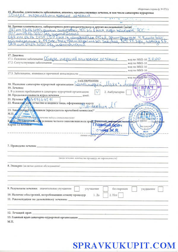 Купить санаторно курортную карту 072 у-04 в Москве срочно