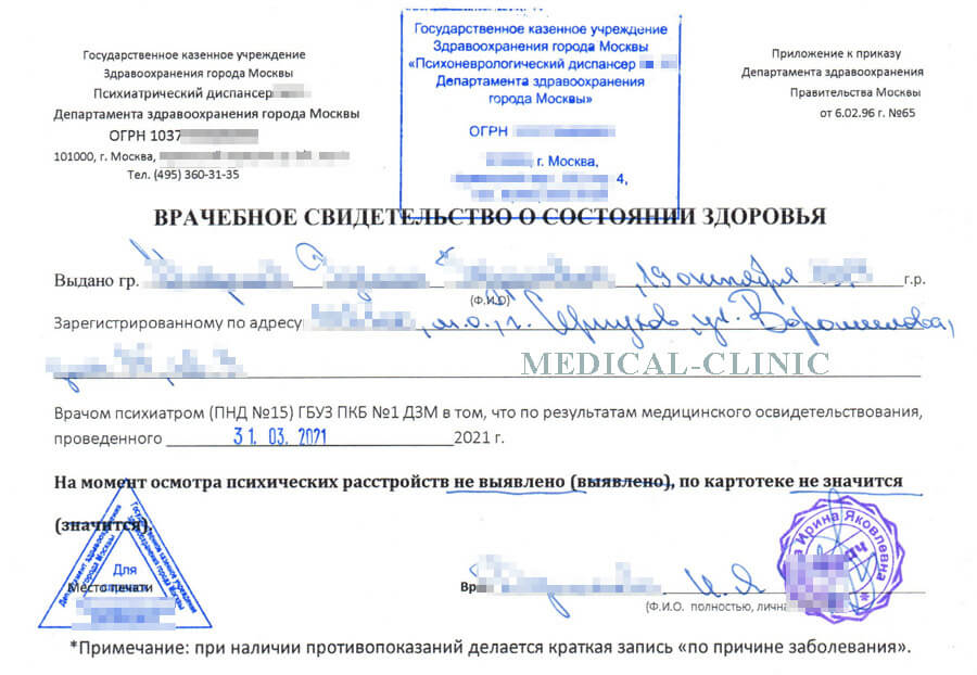 Купить справку от психиатра и нарколога в Москве дешево