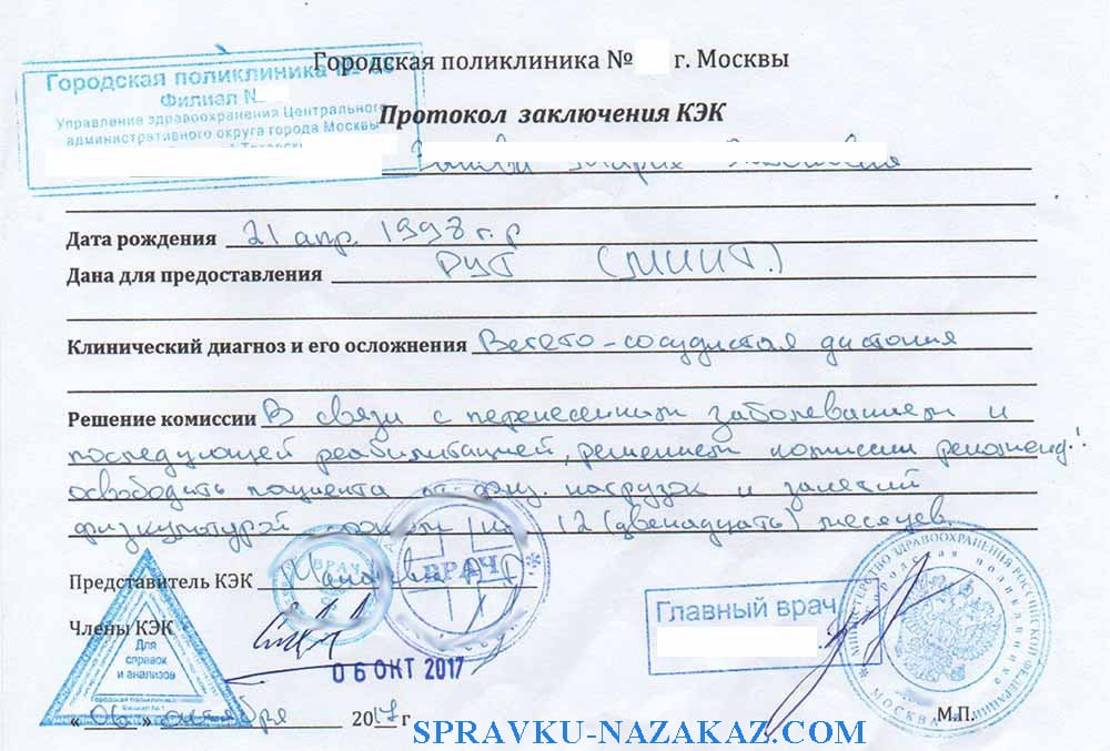 Купить справку-заключение КЭК в Москве