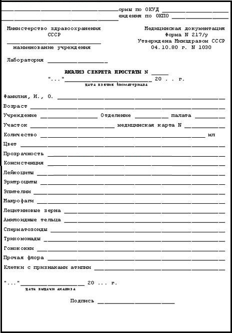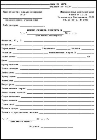 Необходимые данные для оформления заказа результата анализа простаты: