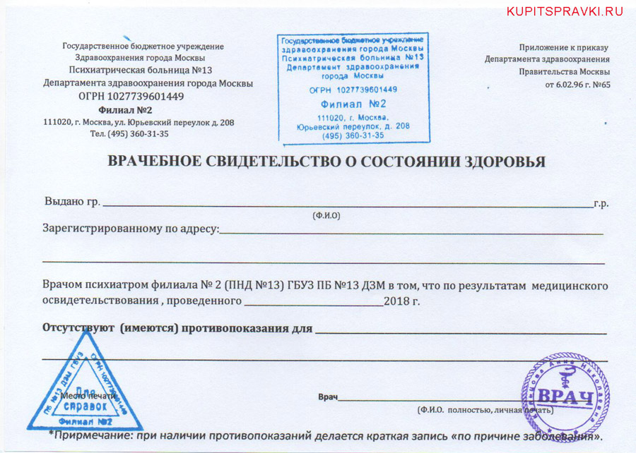 Купить справку из наркологического диспансера в Москве для гибдд