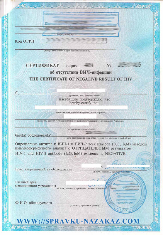 Купить справку на ВИЧ отрицательный в Москве