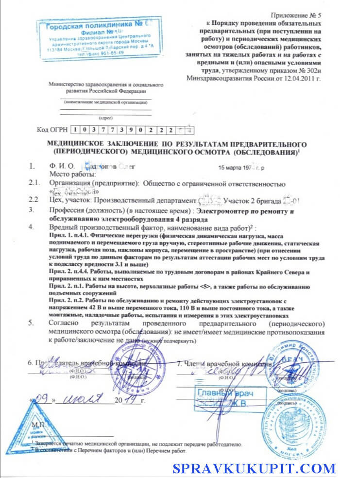Медицинская справка для работы по форме 302н