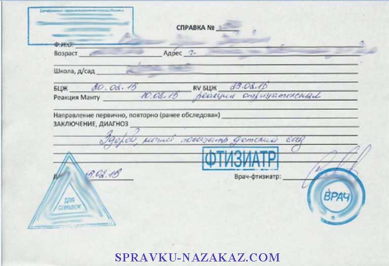 Купить справку от фтизиатра для детского сада в Москве