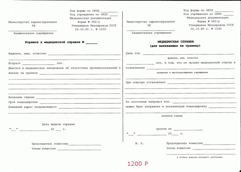 Купить справку для выезда за границу 082 у в Москве с доставкой